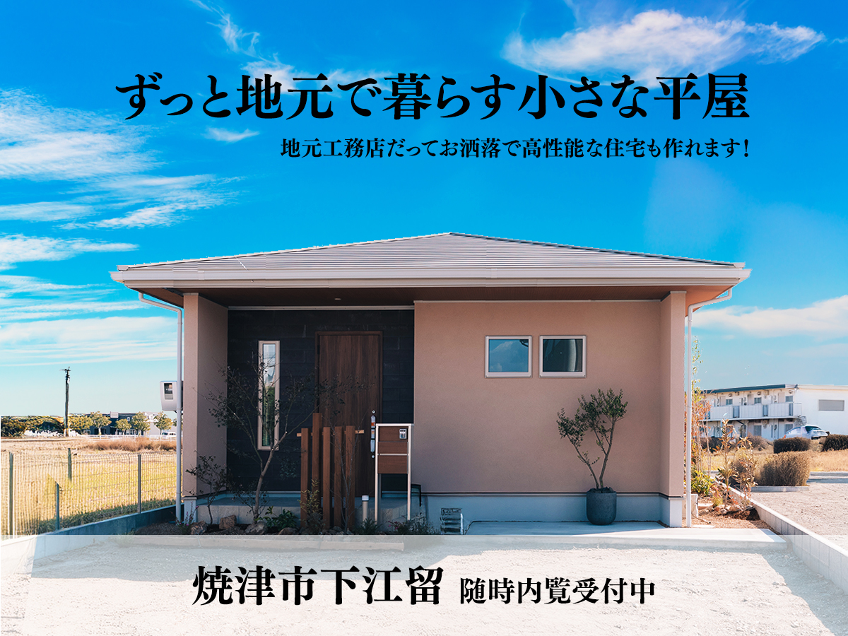 □ 焼津市下江留新築分譲住宅 8月30日(土) 9:00~15:00 □ 焼津市下江留3区画分譲地に新築分譲住宅の建築がスタートしました。 「ずっと地元で暮らす小さな平屋」地元工務店だってお洒落で高性能な住宅も作れます …